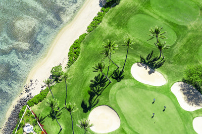 The beach meets the links in WA’ALAE COUNTRY CLUB, OAHU from Gray’s beloved aerial series, À la Plage.